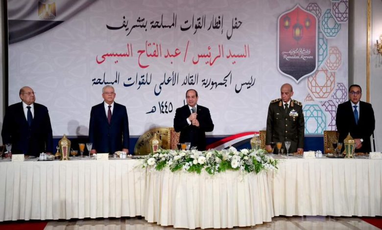 الرئيس السيسي يحضر حفل الإفطار السنوي للقوات المسلحة ويهنئ الشعب المصري العظيم والقوات المسلحة بذكرى انتصارات العاشر من رمضان